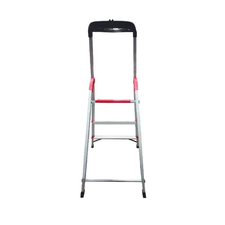 ٰنردبان 3 پله فراز پله مدل زمرد فراز پله یک محصول مقاوم، سبک و با دوام است. برای انجام کارهای عمومی در منازل و کارگاهها بسیار مناسب است.نردبان زمرد را میتوان یکی از بهترین نردبانهای آلومینیومی تولید داخل دانست، باآنکه بسیاری از برندهای معتبر نردبانهای آلومینیومی خانگی تولید میکنند و همهی آنها شباهت بسیار زیادی باهم دارند اما نردبان زمرد که تولید شرکت قدیمی و شناس فراز پله است و نردبانی است که در این چندین سال امتحان خود را در بین مردم پس داده است. وزن بسیار کم این نردبان موجب شده که جابجایی و حمل و نقل آن بسیار آسان باشد. کفپوش عایق و عاج دار روی پلهها از سر خوردن کاربر جلوگیری می کند. همچنین پهن تر بودن سطح پلههای این نردبان با عرض 10 سانتی متر آن را از سایر نردبان های مشابه متمایز ساخته و باعث می شود هنگام استفاده احساس خستگی نکنید و همچنین پله آخر این نردبان پهن تر از سایر پله ها است برای جا پا بهتر و طول و عرض این پله هم 25 سانتیمتر است. همچنین وجود کفپوش لاستیکی برای پایههای نردبان باعث حفاظت از سطح زیرین مثل فرش، موکت و پارکت میشود. طراحی این نردبان به گونه ای است که بدون لرزش بوده و حداکثر ایمنی را برای کاربر فراهم می کند.بالای نردبان دارای جای ابزار بوده و میتوانید ابزار هایی مانند دریل و پیچ گوشتی و ... در آن قرار دهید.همچنین دستهی بزرگی برای حفظ تعادل نیز دارد که کار شما را در هنگام استفاده از نردبان را بسیار آسان میکند.اتصالات بهکار رفته در ساخت این نردبان خانگی، اتصالات پرچی است که خیال شما را بابت خراب شدن آسوده میسازد زیرا اتصالات پرچی حد دوام بسیار بالایی دارند و هر دو پایه با مفتول به هم وصل هستند تا مقاومت نردبان را بالا ببرند.مواد پلاستیکی بکار رفته در نردبان از نوع PVC و مواد آلومینیوم از نوع درجه یک هستند و نردبان تا حداکثر 130 کیلوگرم تحمل وزن دارد.