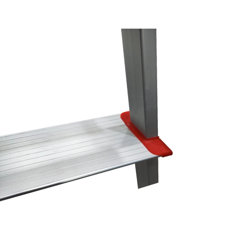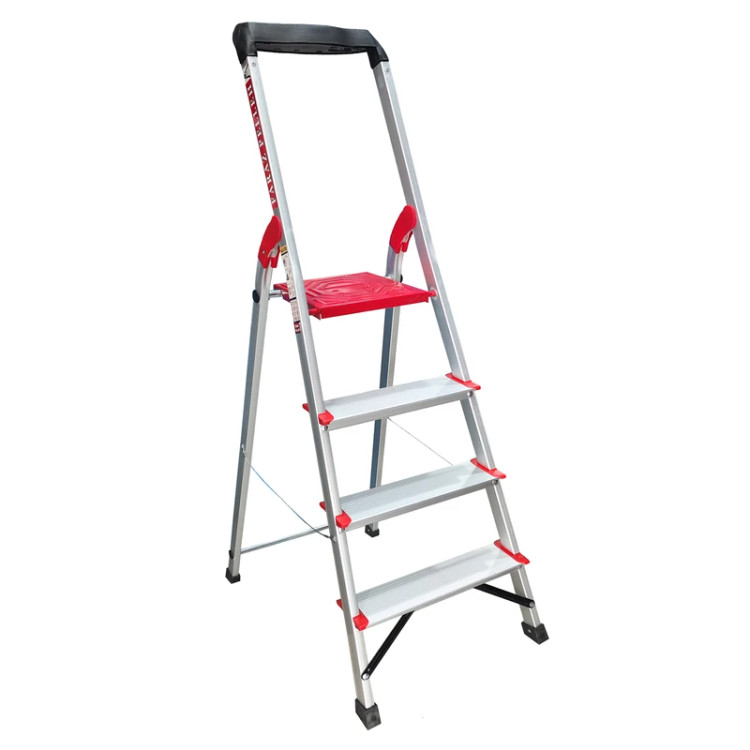 نردبان 4 پله فراز پله مدل زمرد فراز پله یک محصول مقاوم، سبک و با دوام است. برای انجام کارهای عمومی در منازل و کارگاهها بسیار مناسب است.نردبان زمرد را میتوان یکی از بهترین نردبانهای آلومینیومی تولید داخل دانست، باآنکه بسیاری از برندهای معتبر نردبانهای آلومینیومی خانگی تولید میکنند و همهی آنها شباهت بسیار زیادی باهم دارند اما نردبان زمرد که تولید شرکت قدیمی و شناس فراز پله است و نردبانی است که در این چندین سال امتحان خود را در بین مردم پس داده است. وزن بسیار کم این نردبان موجب شده که جابجایی و حمل و نقل آن بسیار آسان باشد. کفپوش عایق و عاج دار روی پلهها از سر خوردن کاربر جلوگیری می کند. همچنین پهن تر بودن سطح پلههای این نردبان با عرض 10 سانتی متر آن را از سایر نردبان های مشابه متمایز ساخته و باعث می شود هنگام استفاده احساس خستگی نکنید و همچنین پله آخر این نردبان پهن تر از سایر پله ها است برای جا پا بهتر و طول و عرض این پله هم 25 سانتیمتر است. همچنین وجود کفپوش لاستیکی برای پایههای نردبان باعث حفاظت از سطح زیرین مثل فرش، موکت و پارکت میشود. طراحی این نردبان به گونه ای است که بدون لرزش بوده و حداکثر ایمنی را برای کاربر فراهم می کند.بالای نردبان دارای جای ابزار بوده و میتوانید ابزار هایی مانند دریل و پیچ گوشتی و ... در آن قرار دهید.همچنین دستهی بزرگی برای حفظ تعادل نیز دارد که کار شما را در هنگام استفاده از نردبان را بسیار آسان میکند.اتصالات بهکار رفته در ساخت این نردبان خانگی، اتصالات پرچی است که خیال شما را بابت خراب شدن آسوده میسازد زیرا اتصالات پرچی حد دوام بسیار بالایی دارند و هر دو پایه با مفتول به هم وصل هستند تا مقاومت نردبان را بالا ببرند.مواد پلاستیکی بکار رفته در نردبان از نوع PVC و مواد آلومینیوم از نوع درجه یک هستند و نردبان تا حداکثر 130 کیلوگرم تحمل وزن دارد.