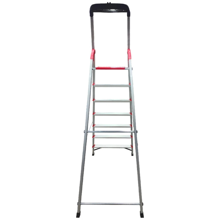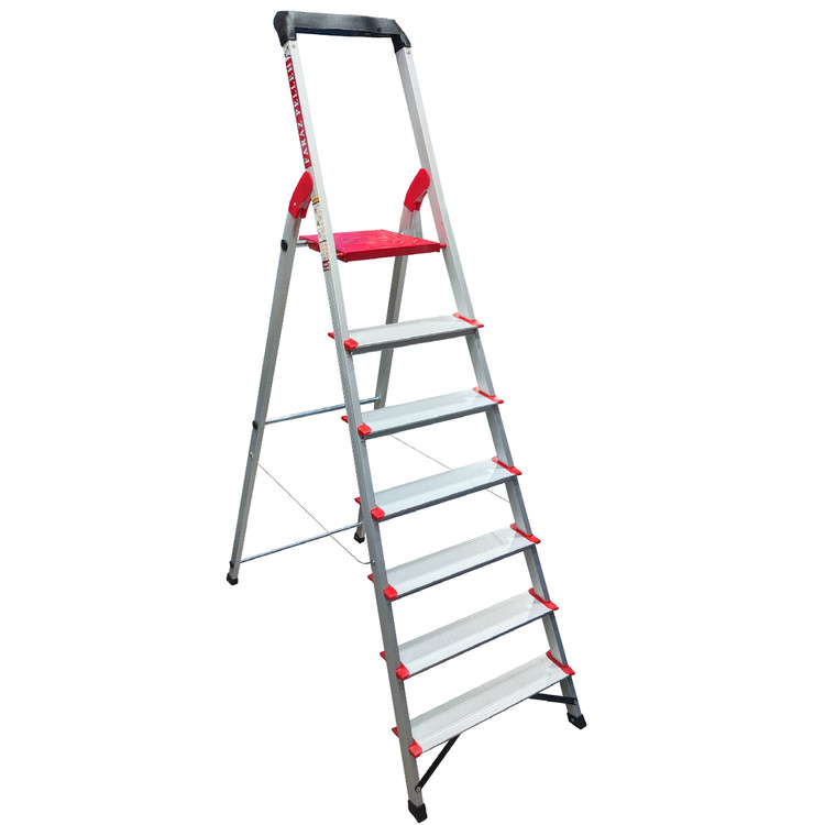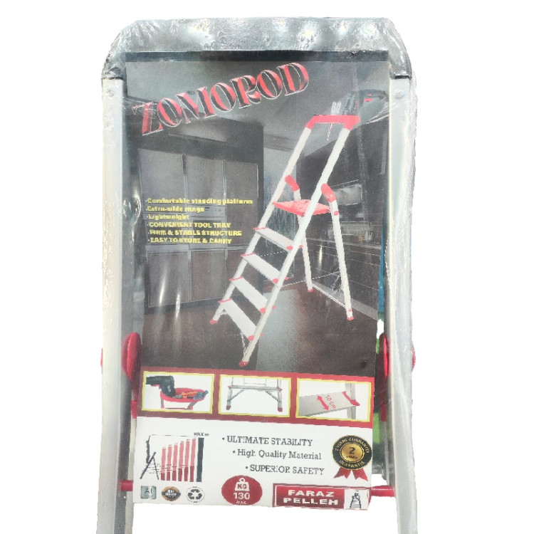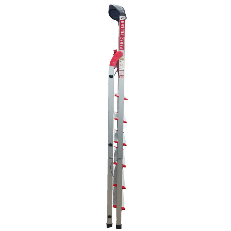 نردبان 7 پله فراز پله مدل زمرد فراز پله یک محصول مقاوم، سبک و با دوام است. برای انجام کارهای عمومی در منازل و کارگاهها بسیار مناسب است.نردبان زمرد را میتوان یکی از بهترین نردبانهای آلومینیومی تولید داخل دانست، باآنکه بسیاری از برندهای معتبر نردبانهای آلومینیومی خانگی تولید میکنند و همهی آنها شباهت بسیار زیادی باهم دارند اما نردبان زمرد که تولید شرکت قدیمی و شناس فراز پله است و نردبانی است که در این چندین سال امتحان خود را در بین مردم پس داده است. وزن بسیار کم این نردبان موجب شده که جابجایی و حمل و نقل آن بسیار آسان باشد. کفپوش عایق و عاج دار روی پلهها از سر خوردن کاربر جلوگیری می کند. همچنین پهن تر بودن سطح پلههای این نردبان با عرض 10 سانتی متر آن را از سایر نردبان های مشابه متمایز ساخته و باعث می شود هنگام استفاده احساس خستگی نکنید و همچنین پله آخر این نردبان پهن تر از سایر پله ها است برای جا پا بهتر و طول و عرض این پله هم 25 سانتیمتر است. همچنین وجود کفپوش لاستیکی برای پایههای نردبان باعث حفاظت از سطح زیرین مثل فرش، موکت و پارکت میشود. طراحی این نردبان به گونه ای است که بدون لرزش بوده و حداکثر ایمنی را برای کاربر فراهم می کند.بالای نردبان دارای جای ابزار بوده و میتوانید ابزار هایی مانند دریل و پیچ گوشتی و ... در آن قرار دهید.همچنین دستهی بزرگی برای حفظ تعادل نیز دارد که کار شما را در هنگام استفاده از نردبان را بسیار آسان میکند.اتصالات بهکار رفته در ساخت این نردبان خانگی، اتصالات پرچی است که خیال شما را بابت خراب شدن آسوده میسازد زیرا اتصالات پرچی حد دوام بسیار بالایی دارند و هر دو پایه با مفتول به هم وصل هستند تا مقاومت نردبان را بالا ببرند.مواد پلاستیکی بکار رفته در نردبان از نوع PVC و مواد آلومینیوم از نوع درجه یک هستند و نردبان تا حداکثر 130 کیلوگرم تحمل وزن دارد.
